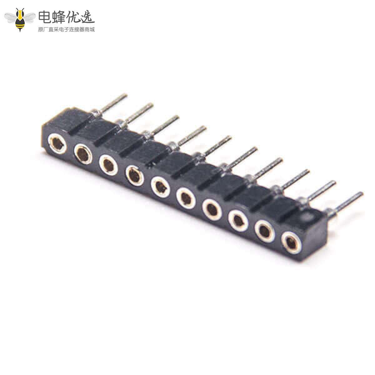 - 排母连接器,母头,直式,180度,10Pin,2.0mm,单排,插板,焊接,镀锡,黑色,H2.8mm,圆形;