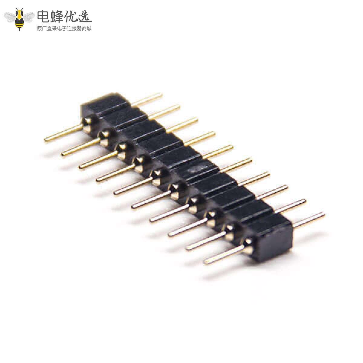 - 排针连接器,公头,直式,180度,20Pin,2.0mm,单排,圆孔,穿孔,焊接,镀金,黑色,H2.8mm,圆形;