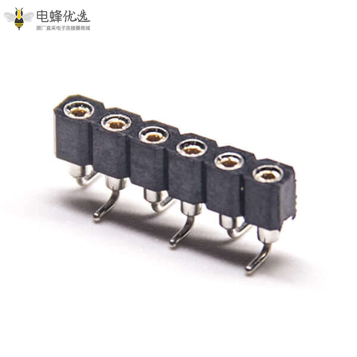 - 排母连接器,母头,直式,180度,6Pin,2.54mm,单排,贴板,焊接,镀锡,黑色,H3.0mm,圆形;