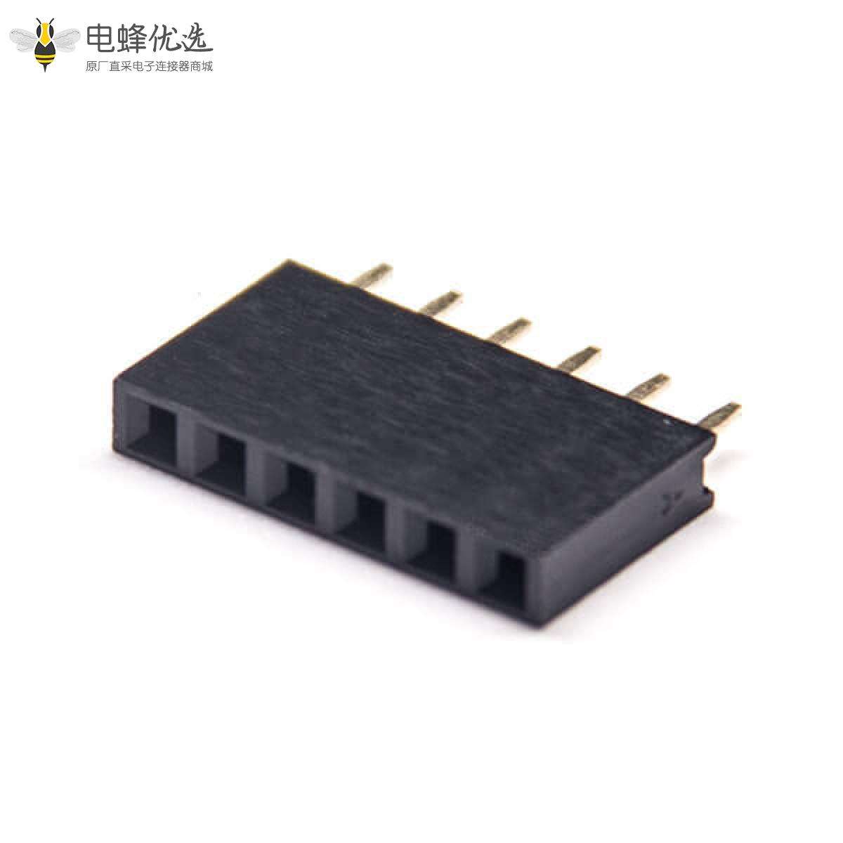 - 排母连接器,母头,直式,180度,8Pin,2.54mm,单排,Y型,插板,焊接,镀金,黑色,H8.5mm,方形;