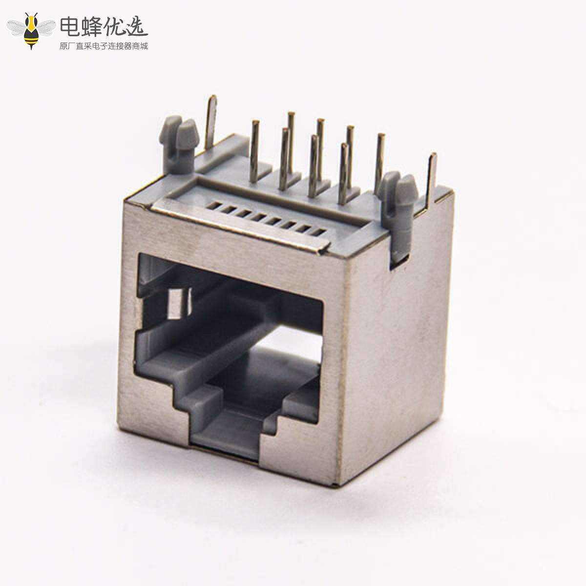 RJ45插座,8P8C,单端口,1*1,弯式90°,触头镀金,插孔,PCB板安装,带屏蔽,不带灯,不带滤波;