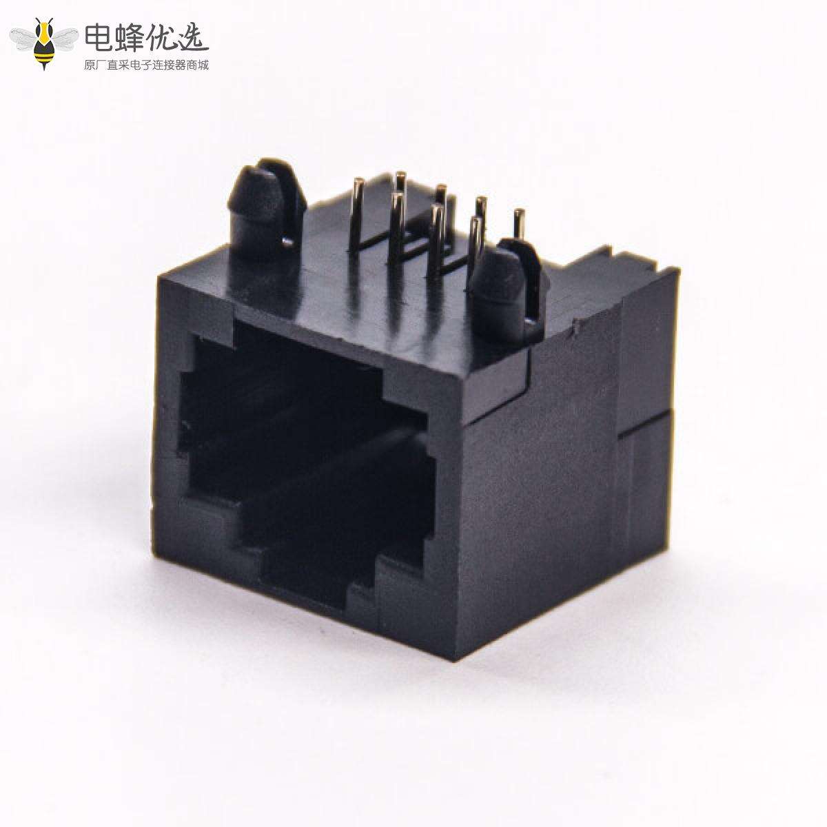 RJ45插座,8P8C,单端口,1*1,弯式90°,触头镀金,插孔,PCB板安装,非屏蔽,带灯,不带滤波;