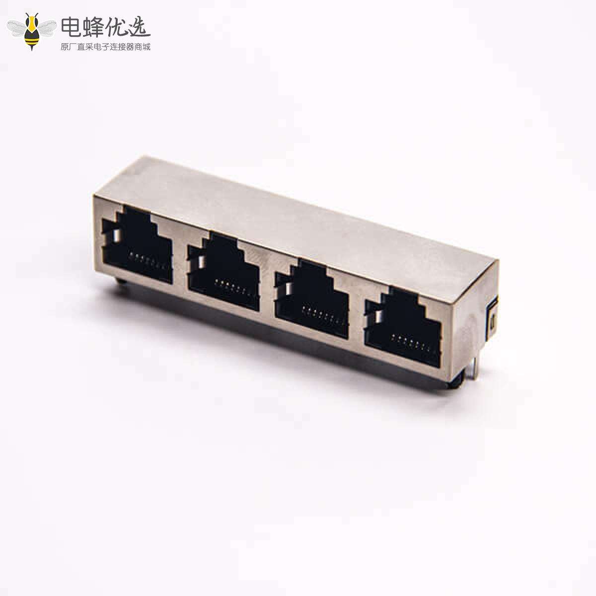 RJ45插座,8P8C,双端口,1*2,弯式90°,触头镀金,插孔,PCB板安装,带屏蔽,带灯,不带滤波;