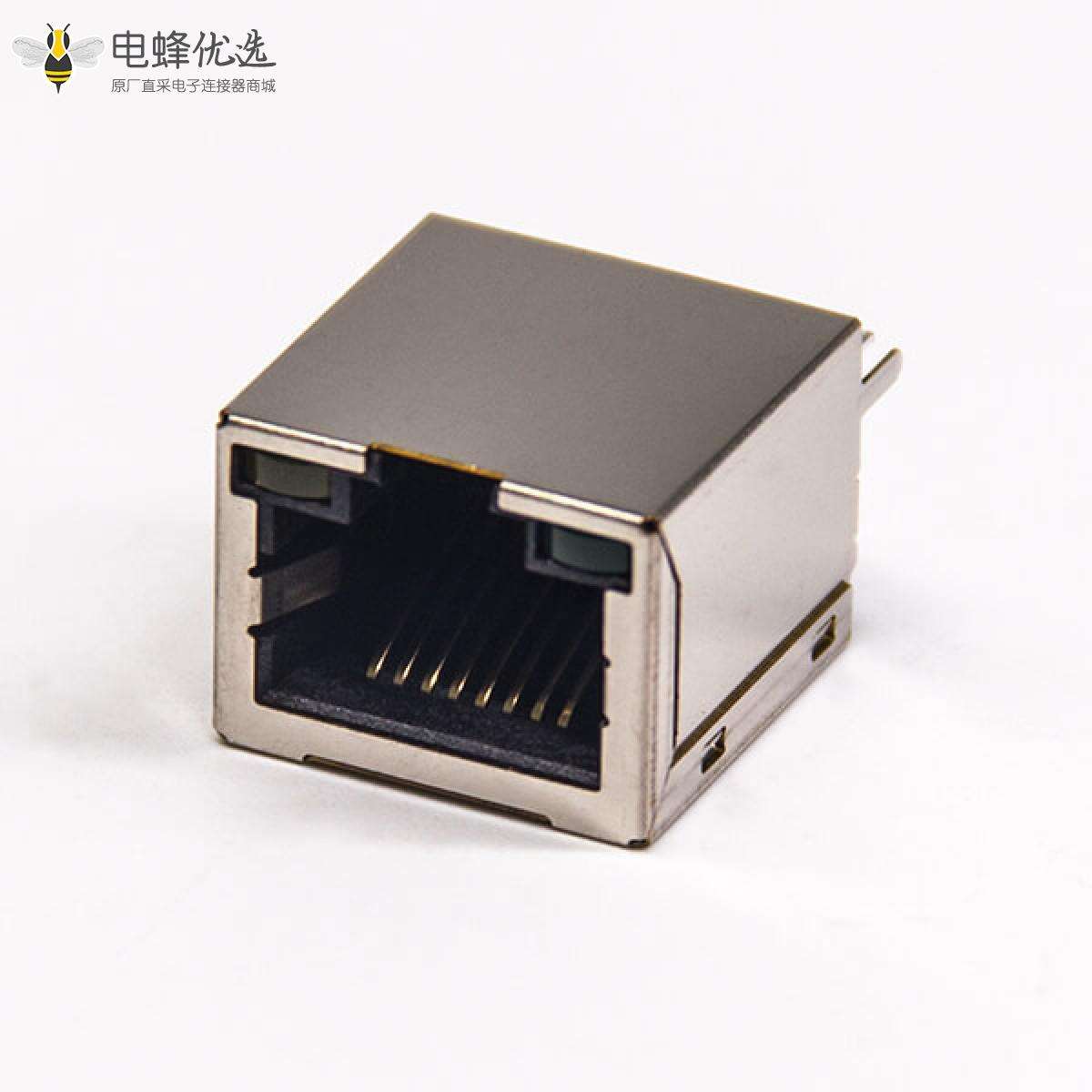 RJ45插座,8P8C,单端口,1*1,直式180°,触头镀金,插板,PCB板安装,带屏蔽,不带灯,不带滤波;