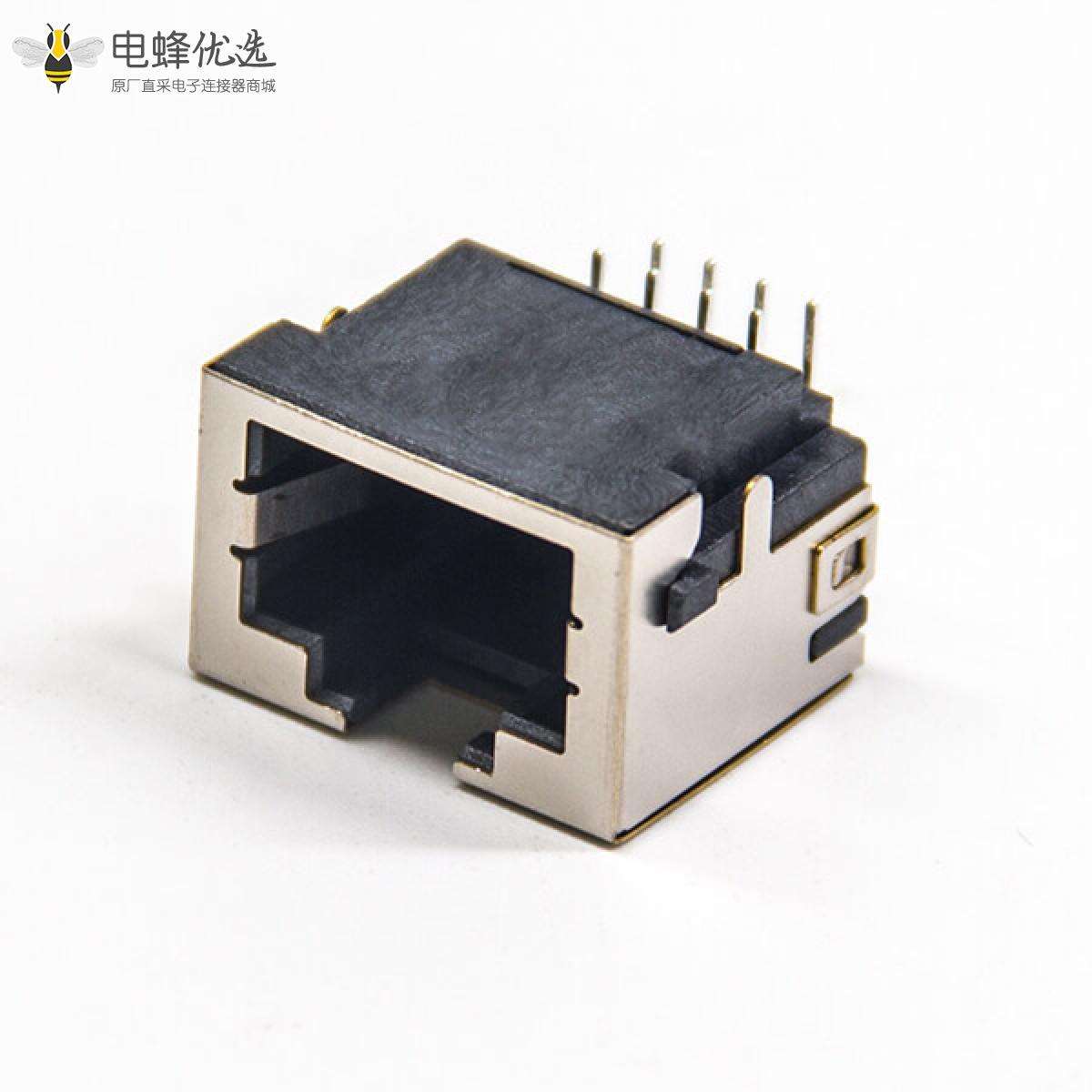 RJ45插座,8P8C,单端口,1*1,弯式90°,触头镀金,沉板,插板,带屏蔽,不带灯,不带滤波;