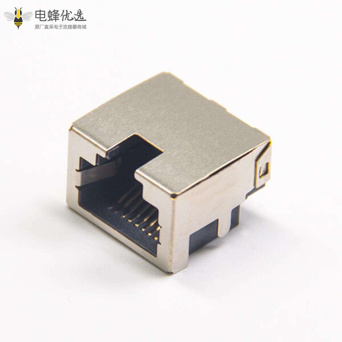 RJ45插座,8P8C,单端口,1*1,弯式90°,触头镀金,沉板,插板,带屏蔽,不带灯,不带滤波;