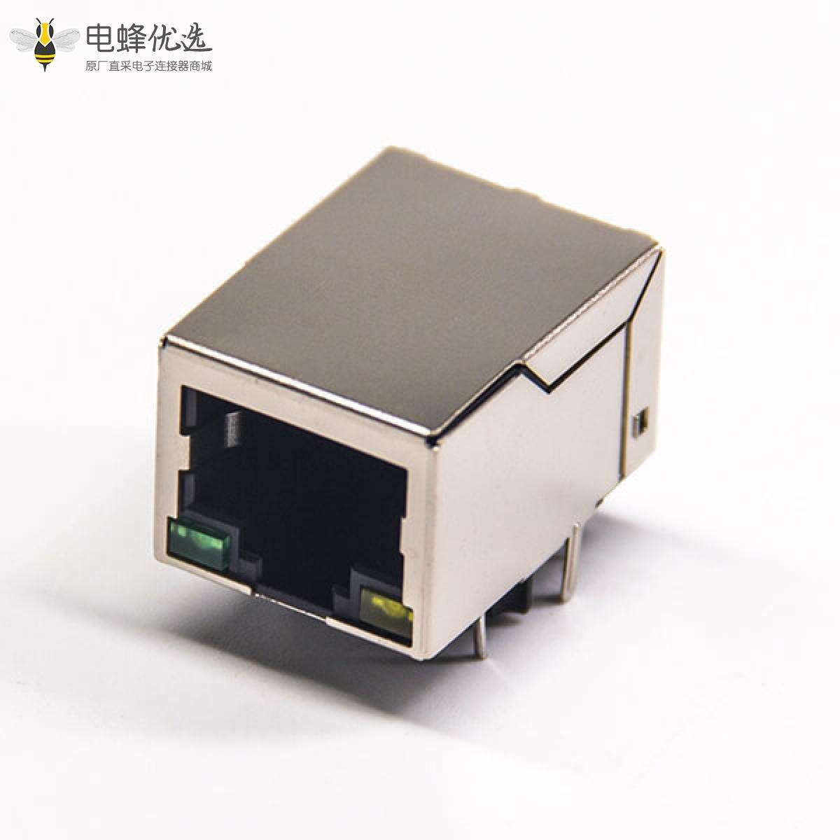 RJ45连接器弯式穿孔式单口带屏蔽带灯以太网接口