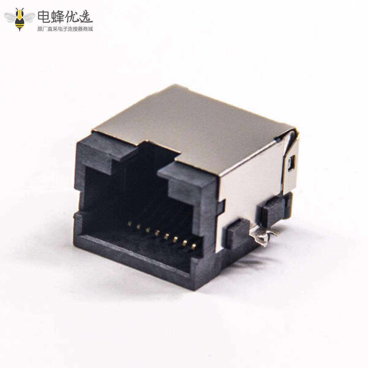 RJ45插座,8p8c,单端口,1*1,直式180º,触头镀金,插孔,PCB板安装,带屏蔽,不带灯,不带滤波;