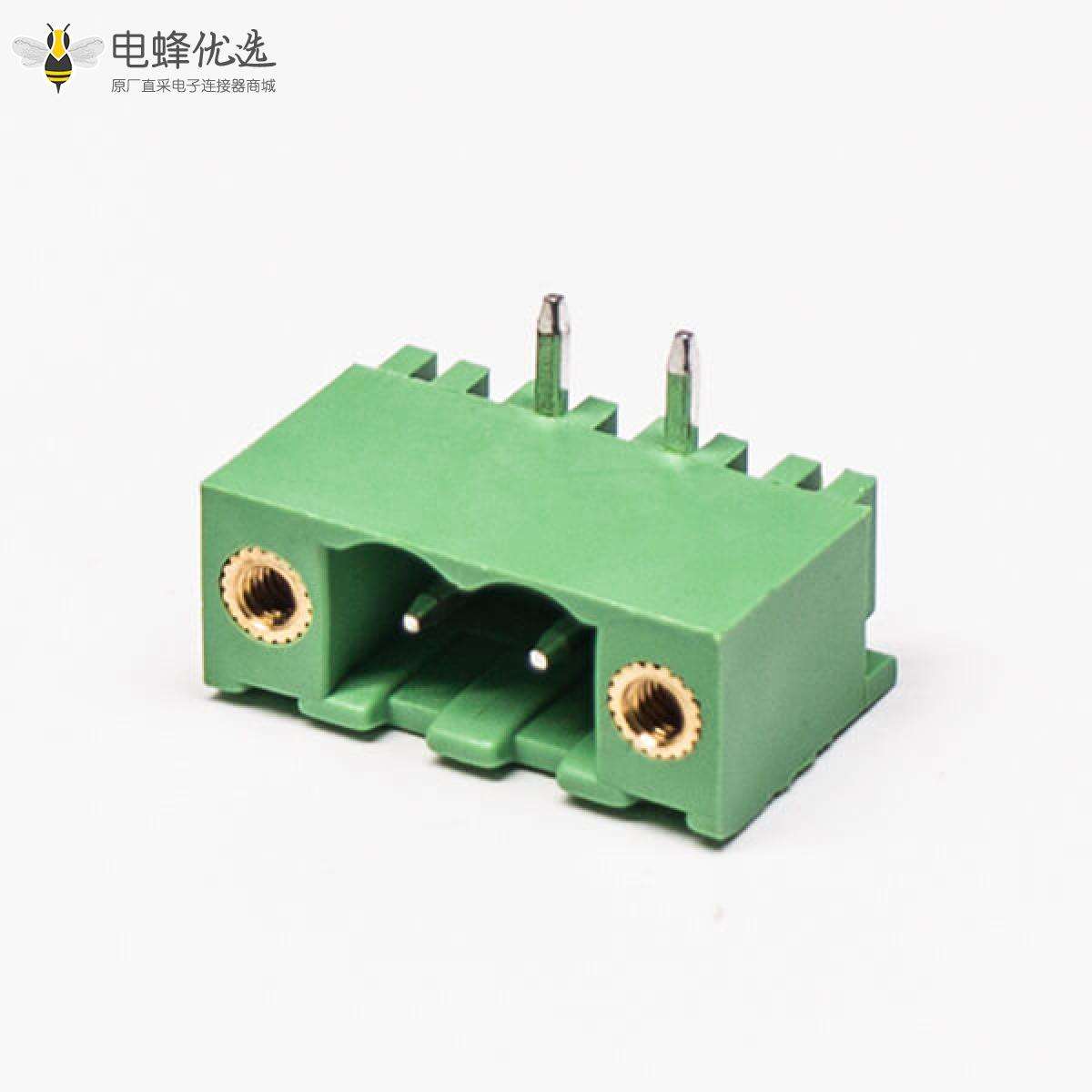 插拔式端子,绿色,弯式,2芯,300V,10A,3.50/3.81mm,插孔,焊接;