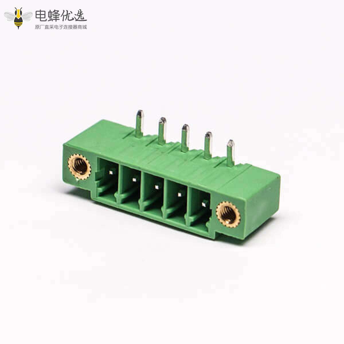 插拔式端子,绿色,弯式,5芯,300V,10A,3.50/3.81mm,插孔,压装;