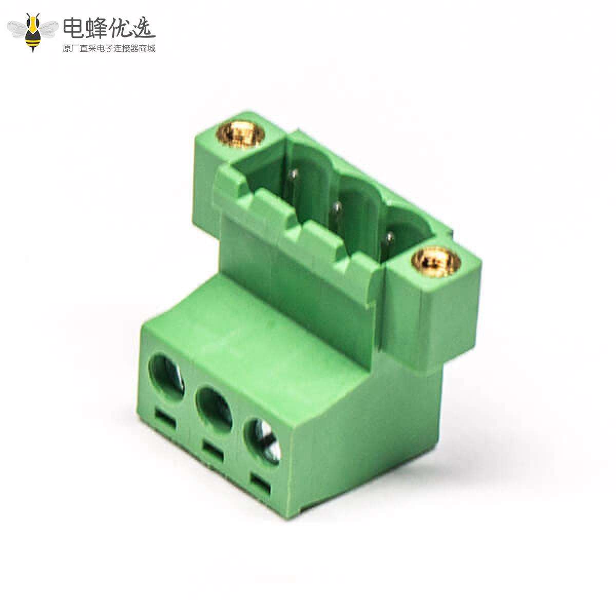 插拔式端子,绿色,弯式,3芯,300V,20A,5.08mm,插孔,螺钉夹紧;