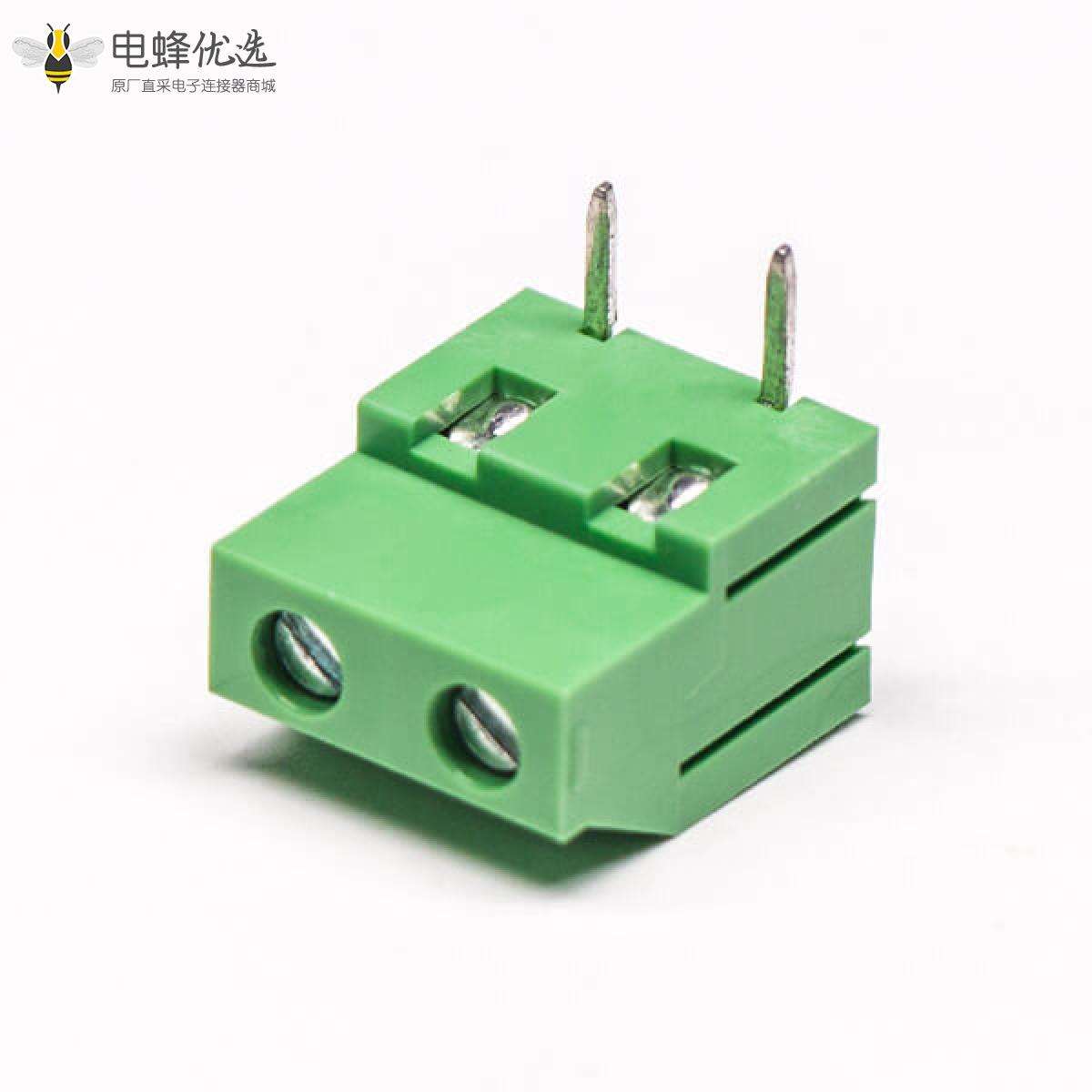 螺钉式端子,绿色,弯式,2芯,300V,15A,5.00/5.08mm,插孔,螺钉夹紧;