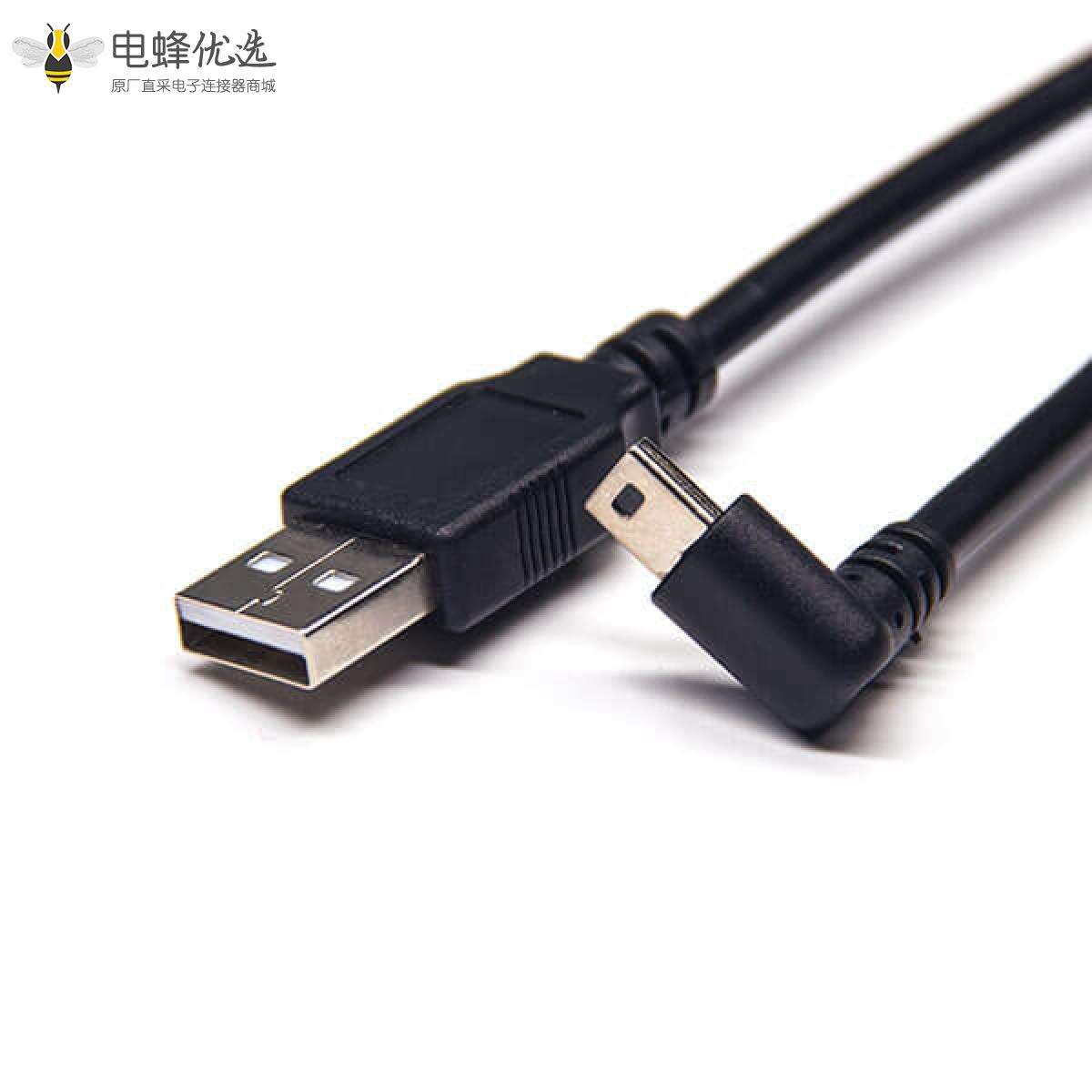 USB 2.0线材,Type A,公头,直式,Mini-B,公头,下弯;