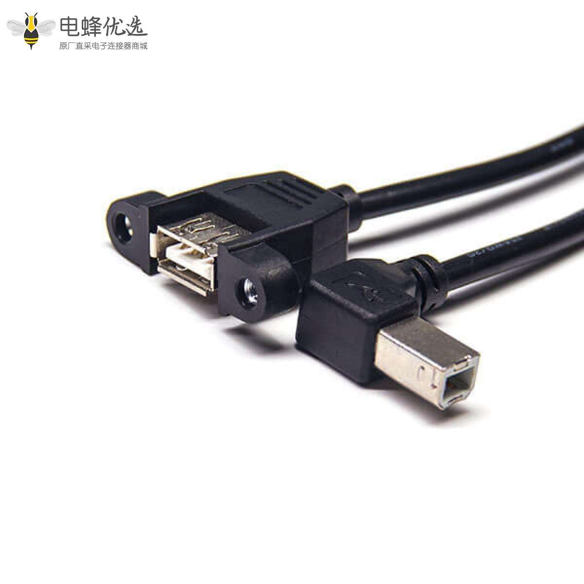 USB 2.0线材,Type A,母头,直式,Type B,公头,右弯;