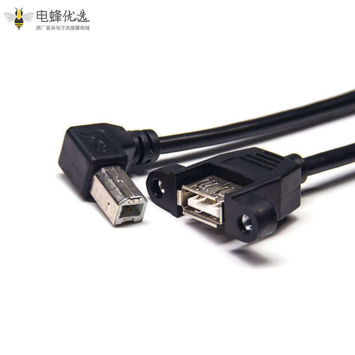 USB 2.0线材,Type A,母头,直式,Type B,公头,左弯;