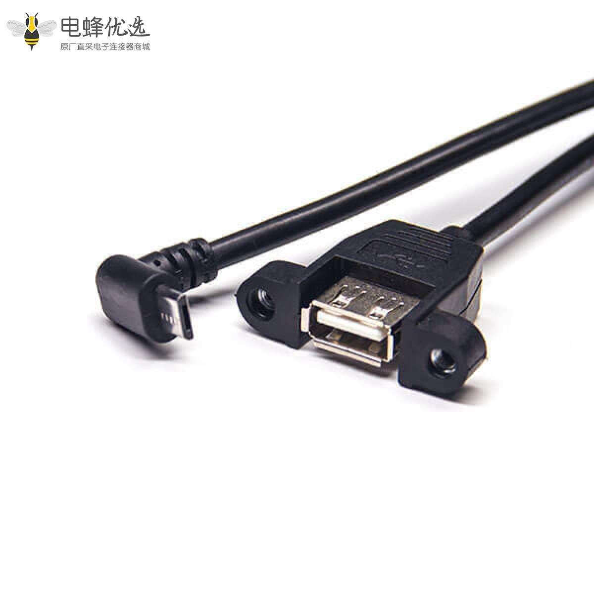 USB2.0线材,Micro USB,公,下弯头,USB A,母,直;