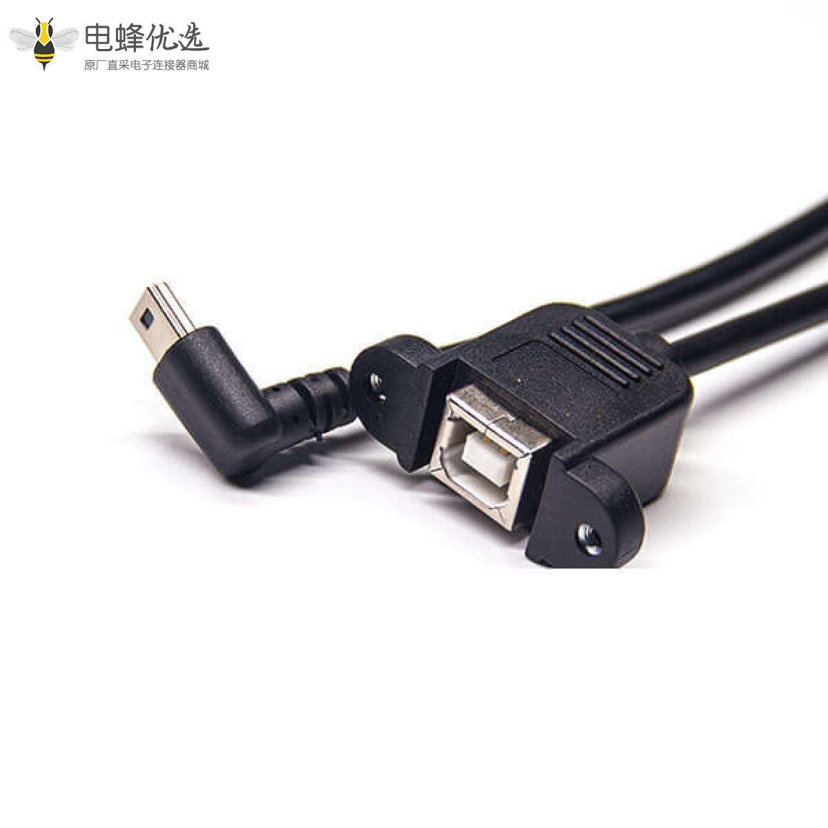 USB2.0线材,Mini USB,公,下弯,USB B,母,直;