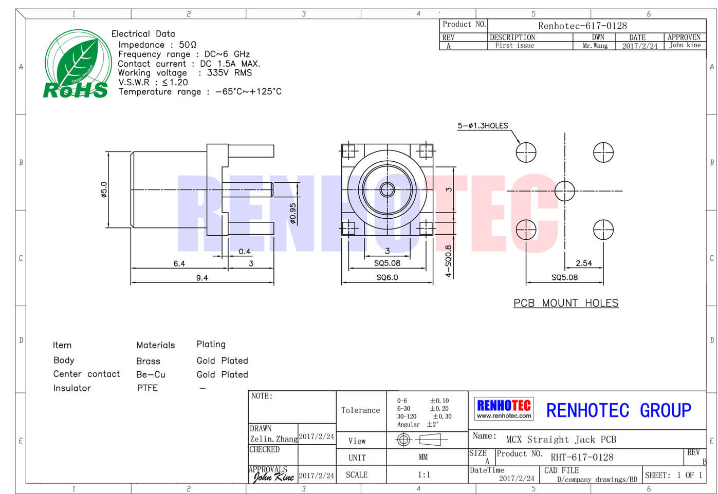 - 中心接触电阻: ≦ 5.0 mΩ (Milliohms max.)
