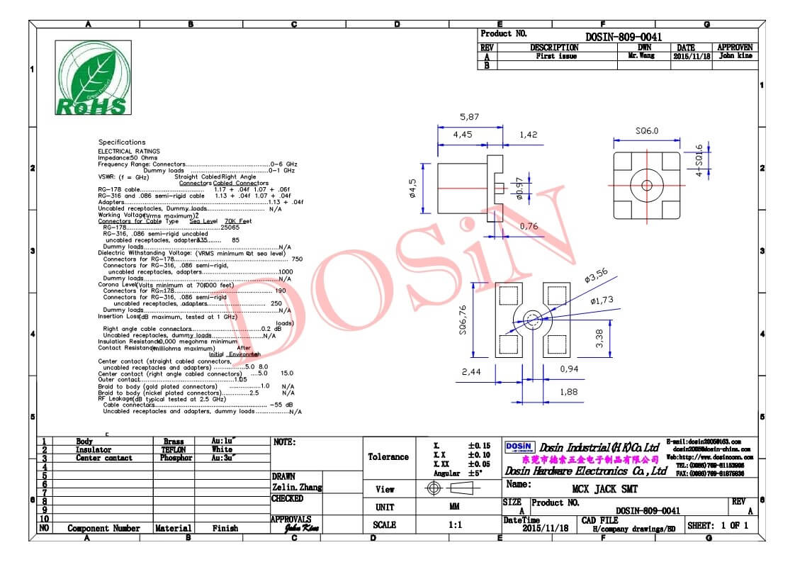 - mcx连接器,pcb板,母头,50欧,表贴;
