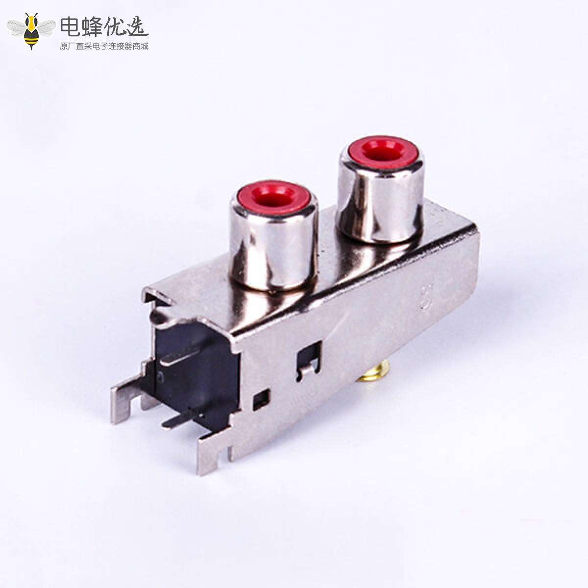 RCA连接器,母,插座,90°弯式,2孔,2*1,接板,插板,铁壳,镀镍;