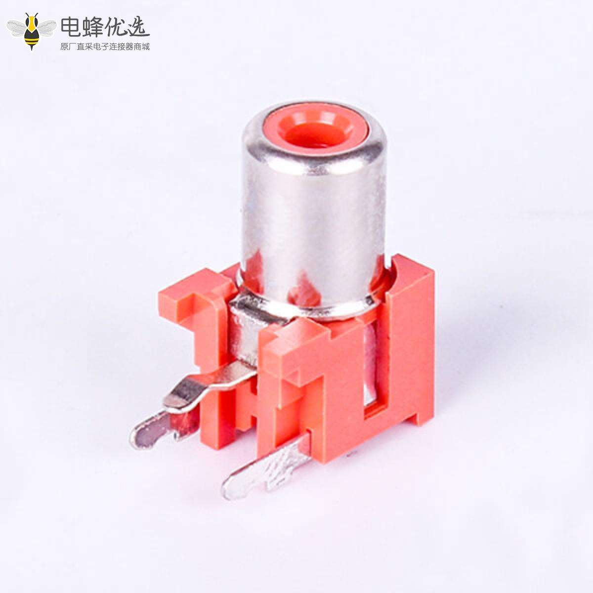 RCA连接器,母,插座,90°弯式,单孔,接板,插板,红色塑胶,ABS.PBT,镀镍;
