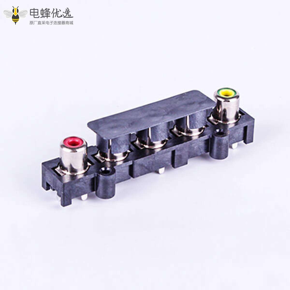 RCA连接器,母,插座,180°直式,5孔,5连体,接板,插板,黑色塑胶,ABS.PBT,镀镍;