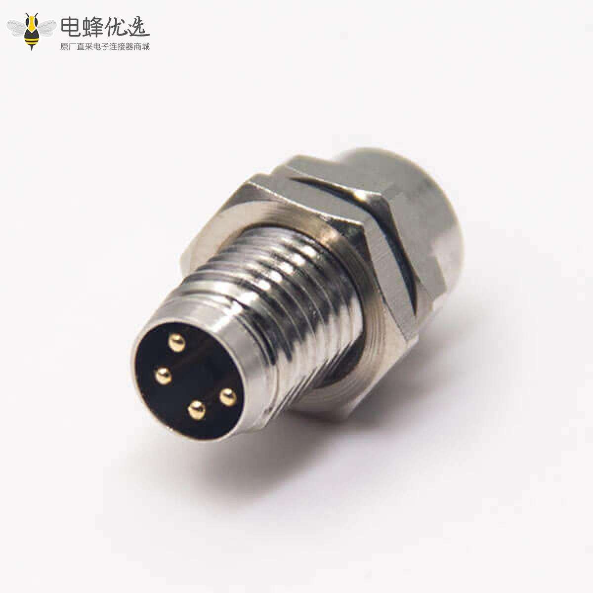 - M8,4芯,板端插座,公头,直式,前锁板,面板安装,焊线;