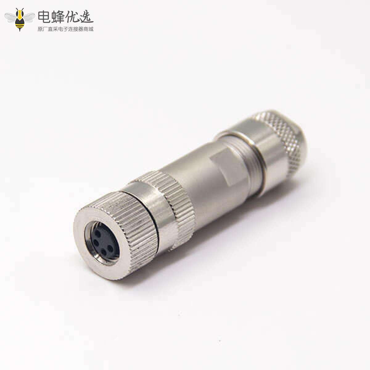- M8,4芯,组装接头,母头,直头,接线,螺丝锁线,带屏蔽;