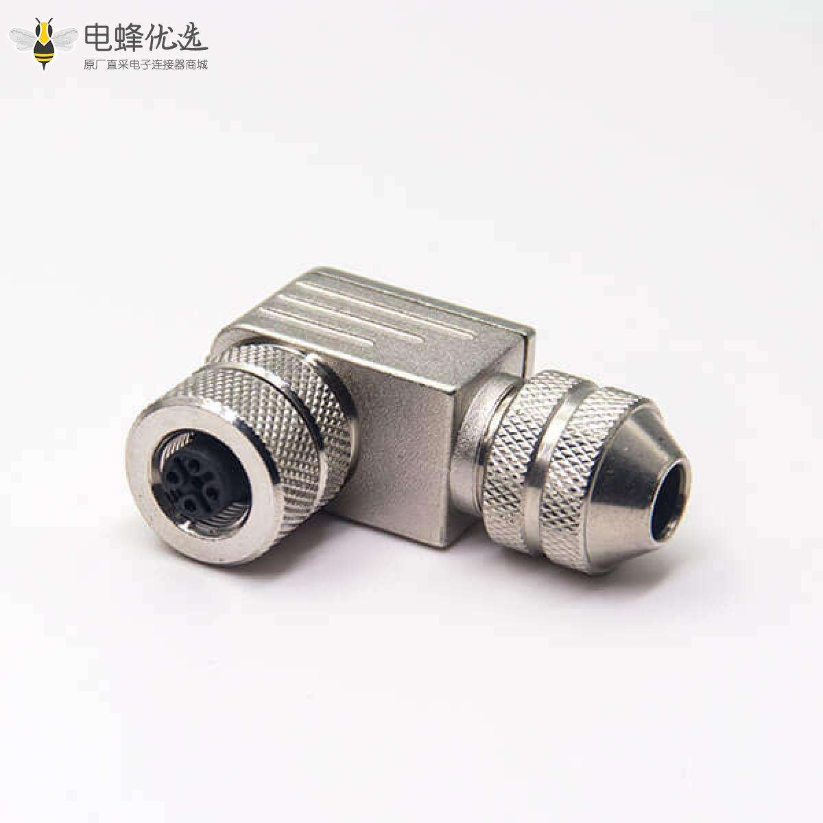 M12,组装接头,A编码,5芯,弯式,母头,接线,螺丝锁线,带屏蔽;