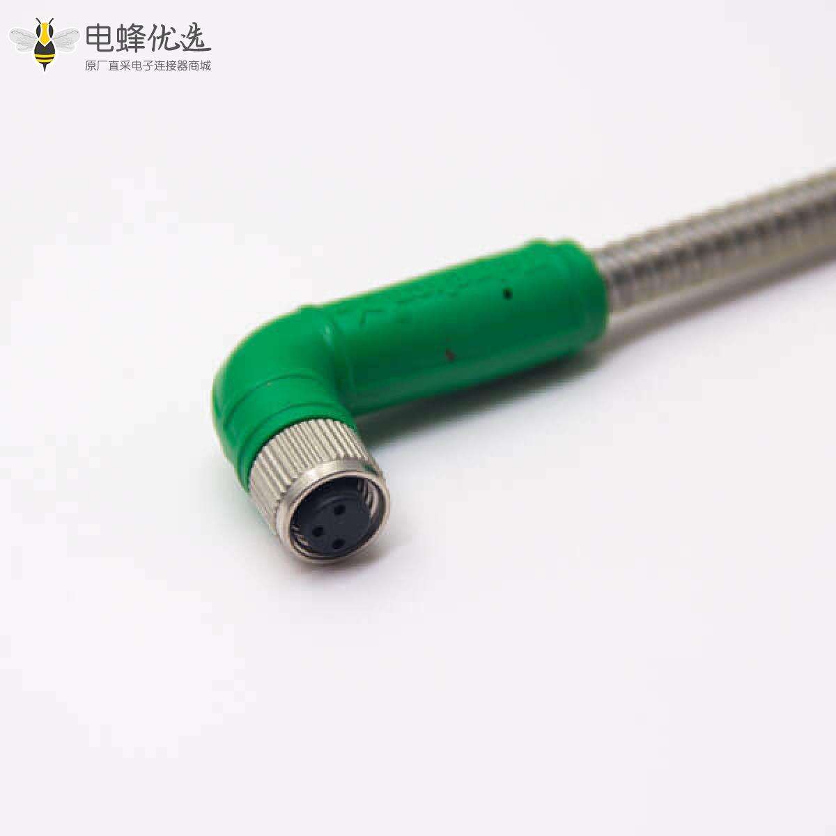 M8,3芯,A编码,线束,母转母, 双边线,弯式,焊线,不带屏蔽 ;