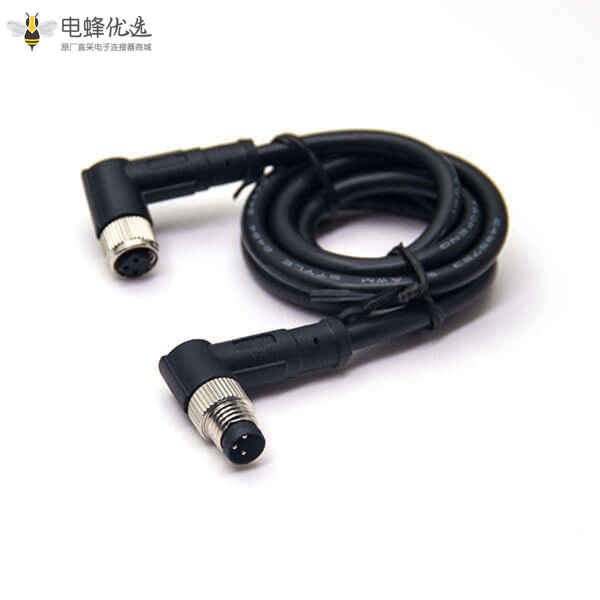 M8,3芯,线束,公转母, 双边线,弯式,焊线,不带屏蔽 ;