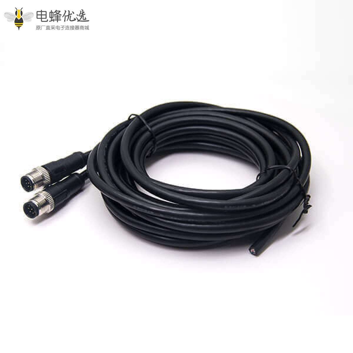 M12,A 编码,线束,8芯,公头,直式,焊线,单边,不带屏蔽;
