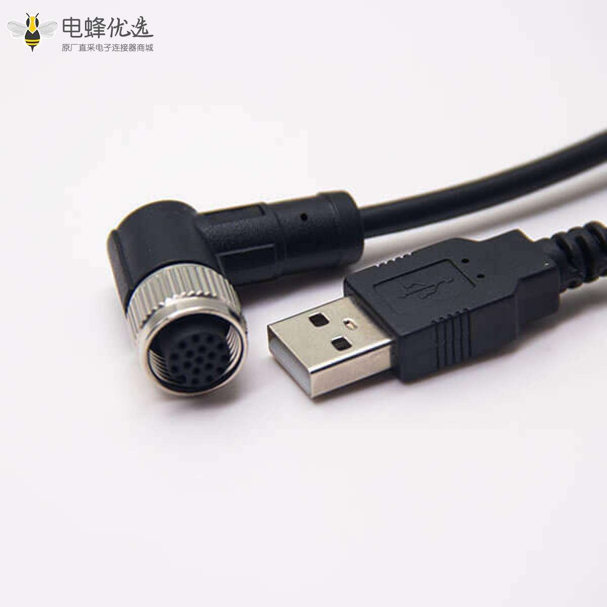 M12,A 编码,线束,17芯,母转公,弯式,焊线,双边,不带屏蔽;