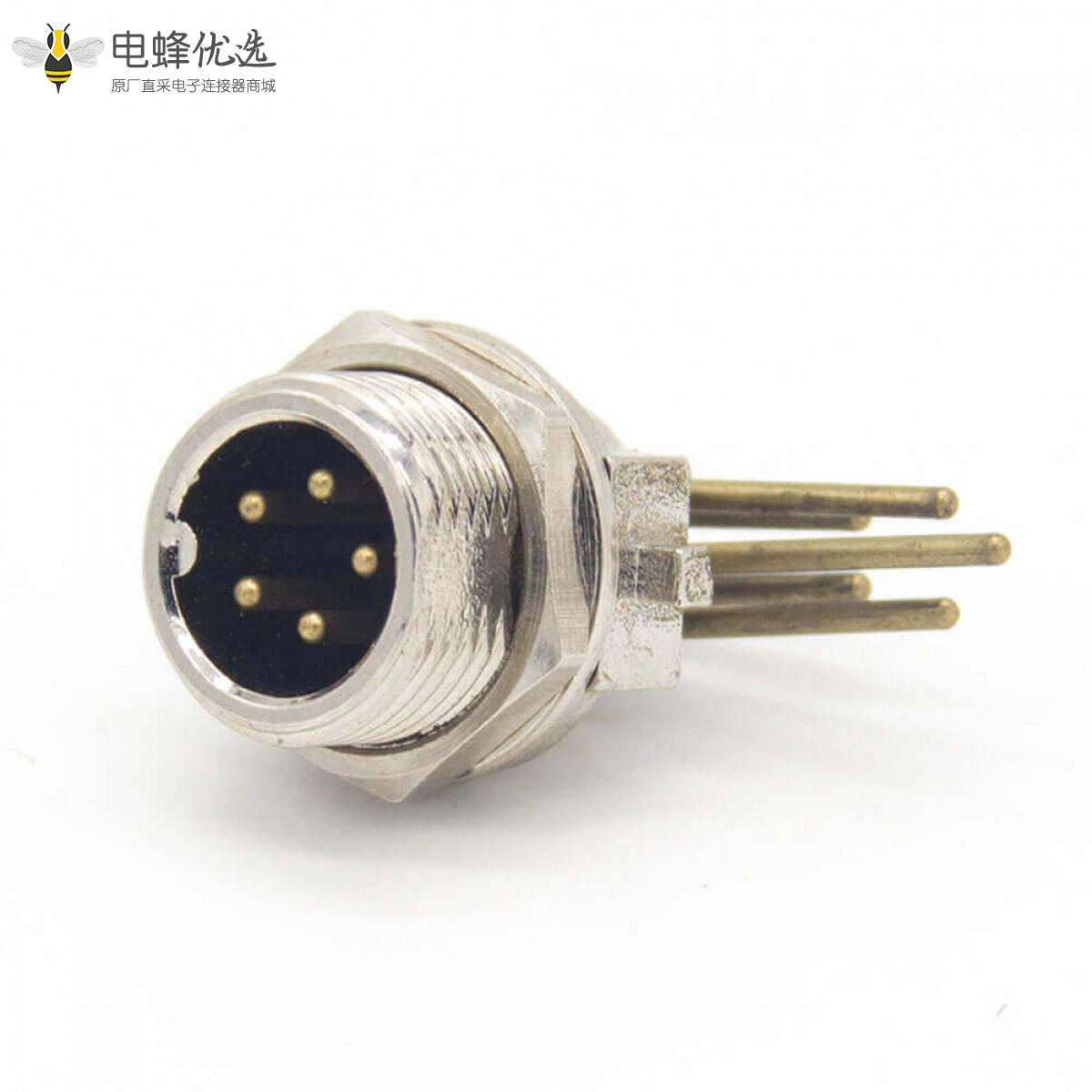 - GX12,标准款,插座,5芯,公,弯式,前锁板,面板安装;