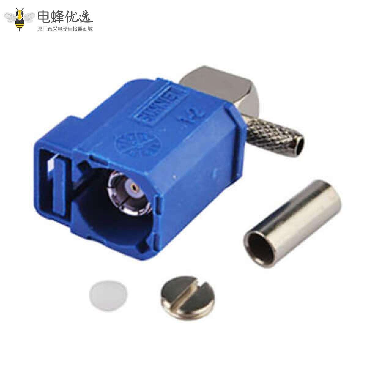 - RF连接器,Fakra连接器,母,弯式,50欧姆,焊接,压接,接线,RG174, RG316,黄铜,镀镍;