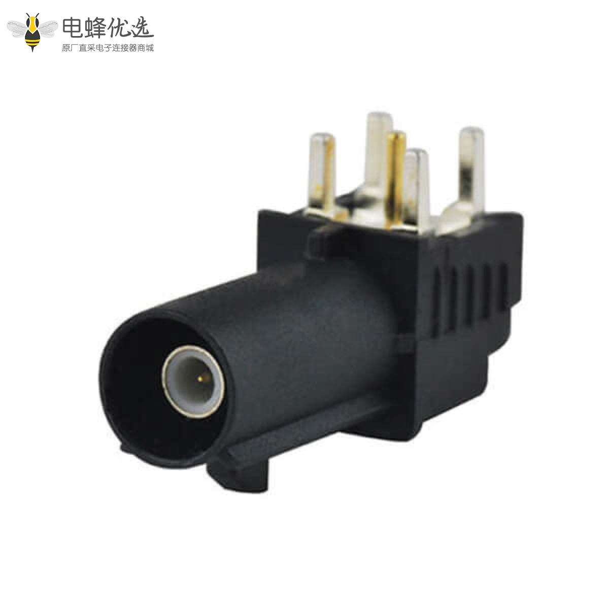 - RF连接器,Fakra连接器,公,SMB,弯式,50欧姆,PCB板安装,插孔,黄铜,镀镍;