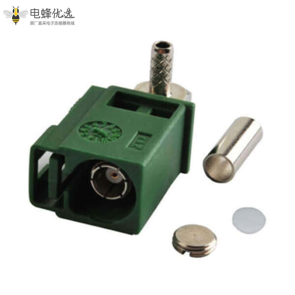 - RF连接器,Fakra连接器,母,弯式,压接,接线,RG316,RG174,黄铜,镀镍;