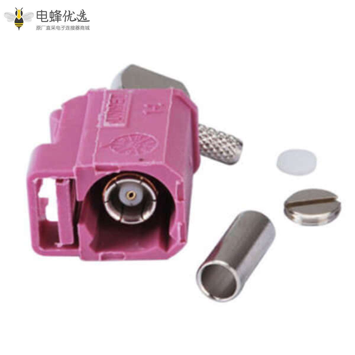 - RF连接器,Fakra连接器,母头,弯式,50欧姆,接线安装,压接,镀镍;