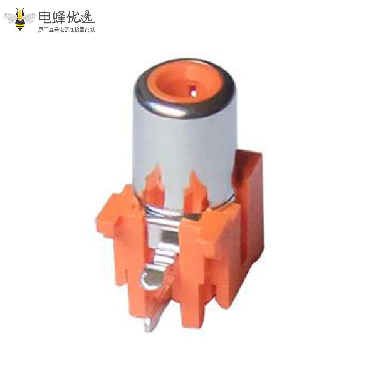 RCA连接器,母,插座,90°弯式,1孔,插板,单孔焊接,橙色塑胶,ABS.PBT,镀镍;