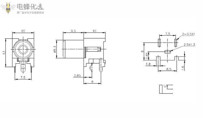 RCA连接器,母,插座,90°弯式,单孔,接板,插板,黑色塑胶,ABS.PBT,镀镍;