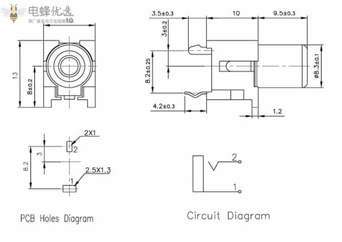 RCA连接器,母,插座,180°直式,单孔,接板,插板,蓝色塑胶,ABS.PBT,镀镍;