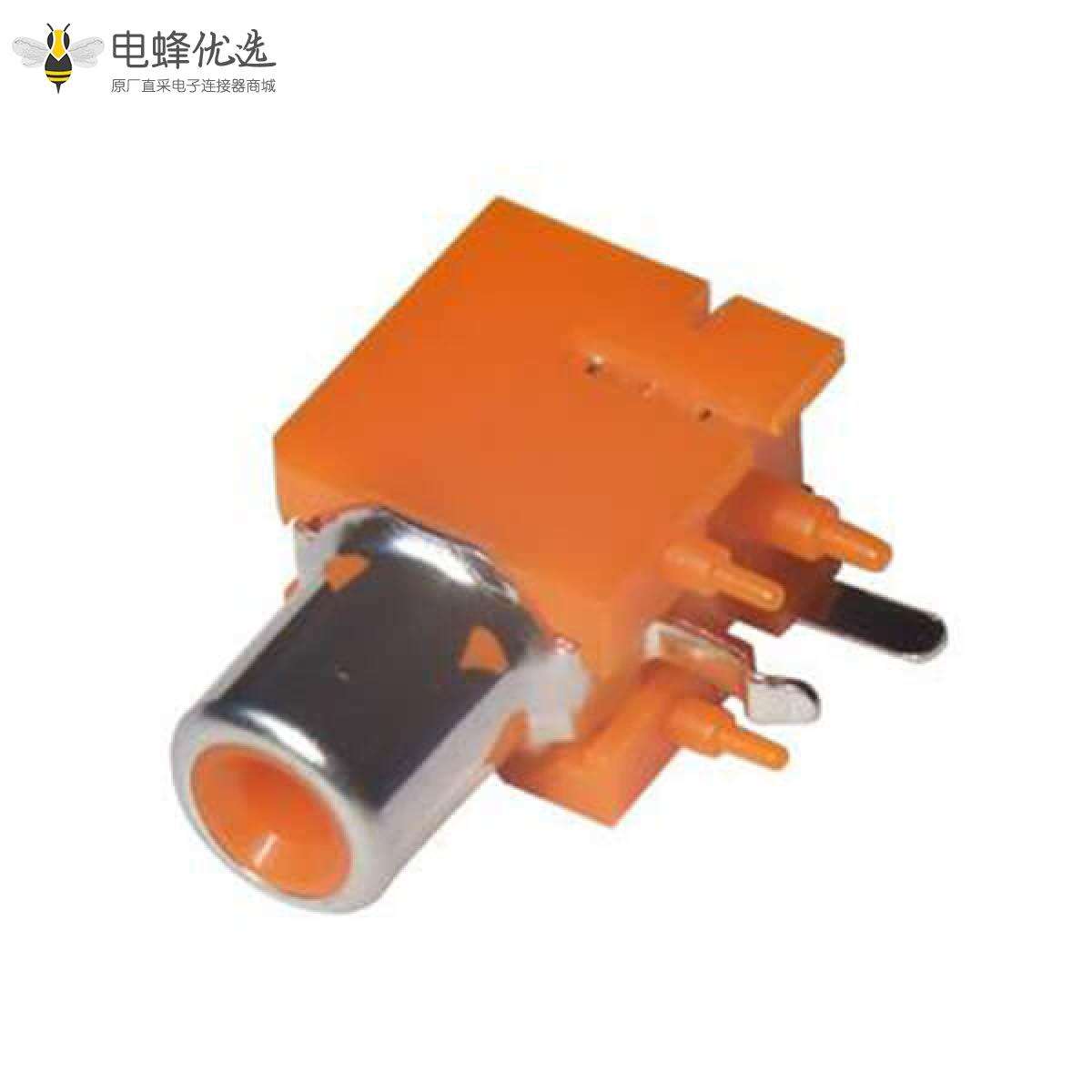RCA连接器,母,插座,90°弯式,单孔,接板,插板,橙色塑胶,ABS.PBT,镀镍;