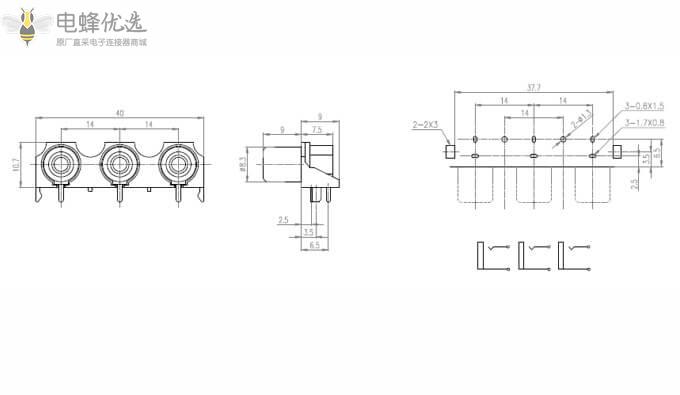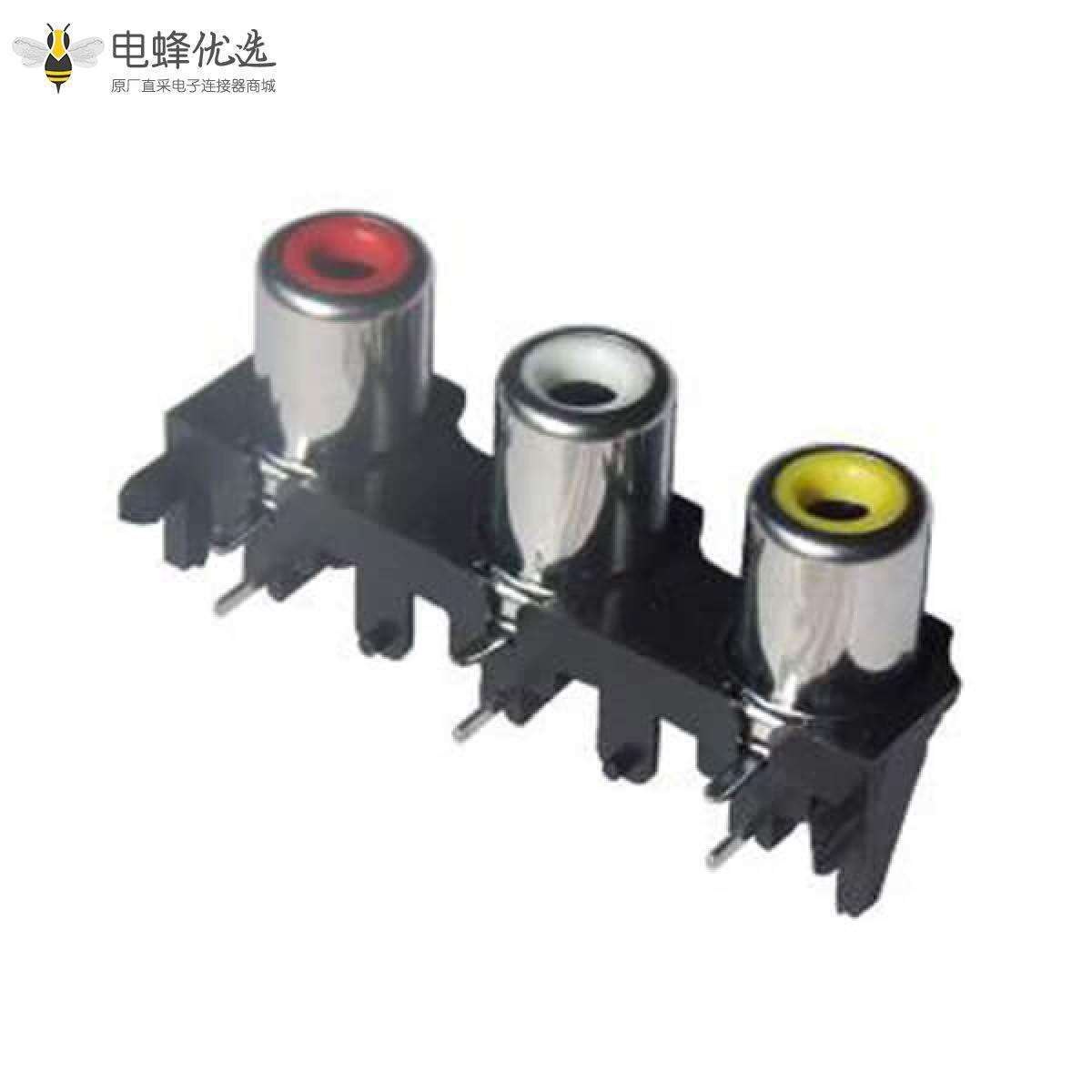 单排3孔90度RCA焊板音频插座