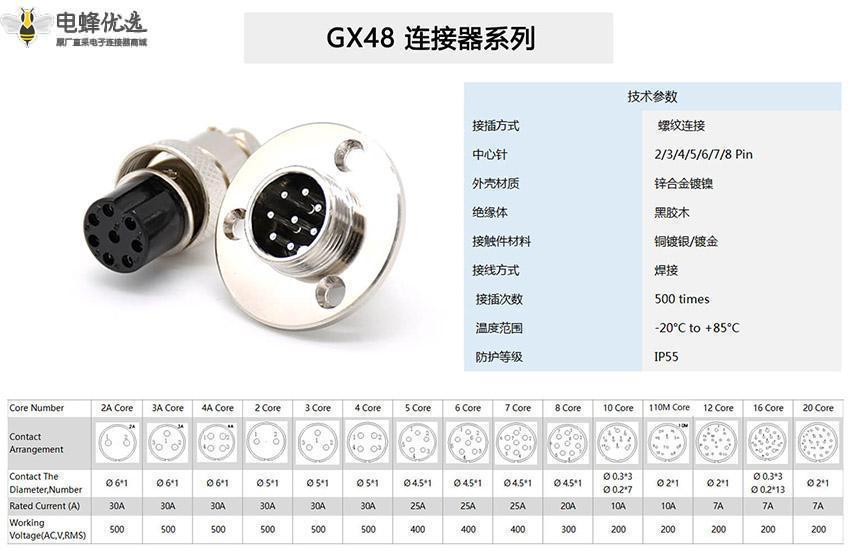 - GX48,反装款,插座,8芯,母,直式,接线/面板;