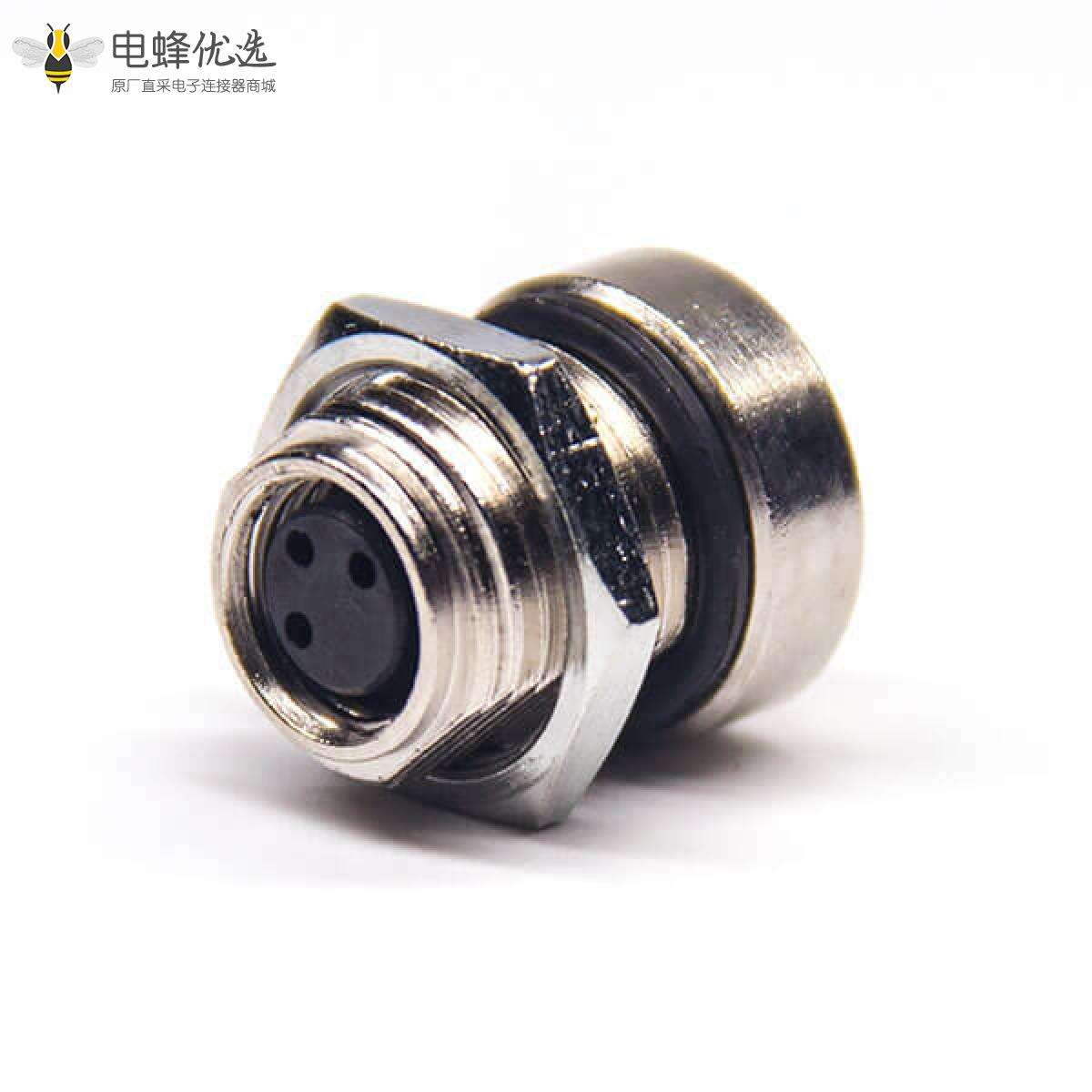 - M8,3芯,板端插座,母头,直式,前锁板,面板安装,焊线 ;