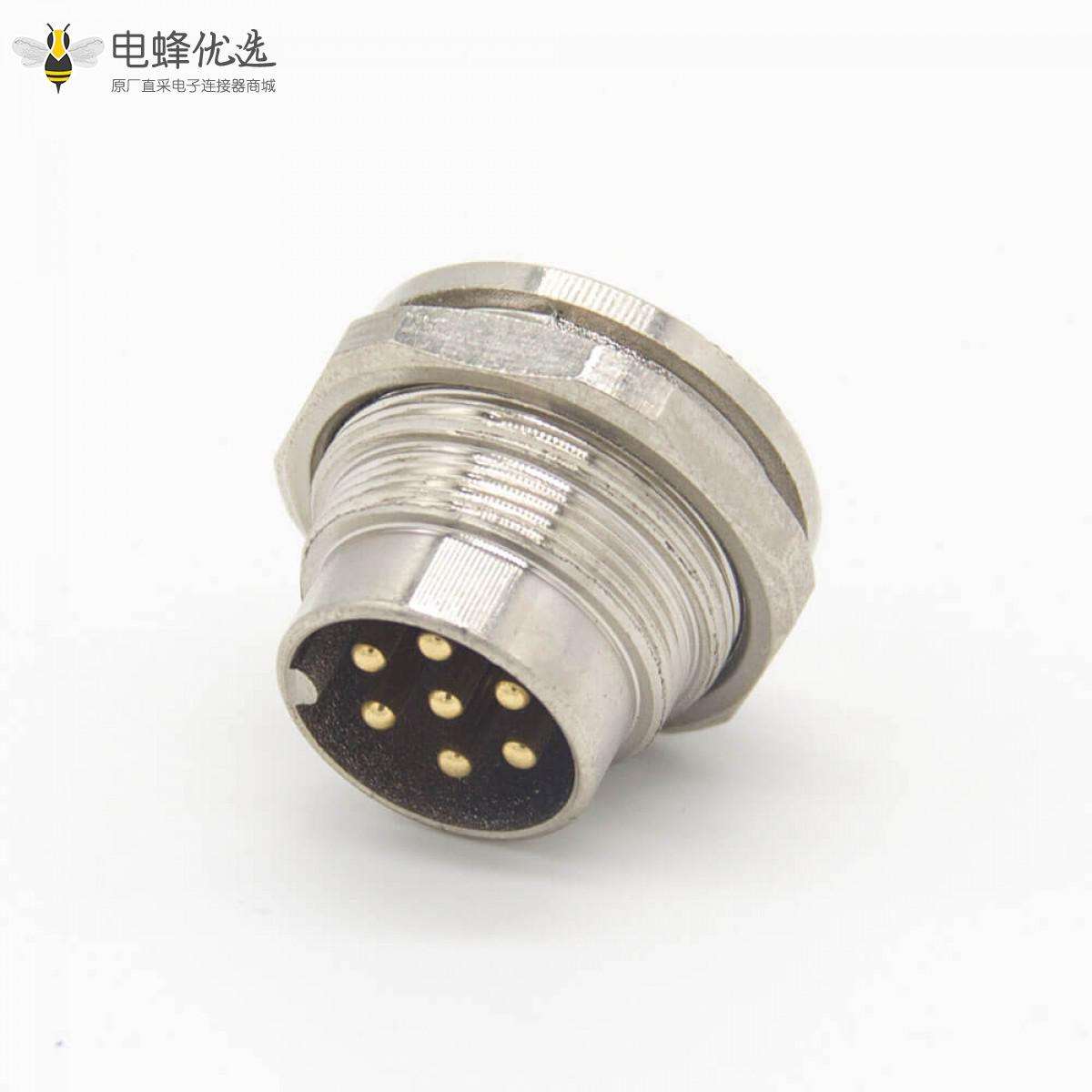 M16,A型,7芯,直式,公插座,前锁穿墙,焊杯,接线,带屏蔽;