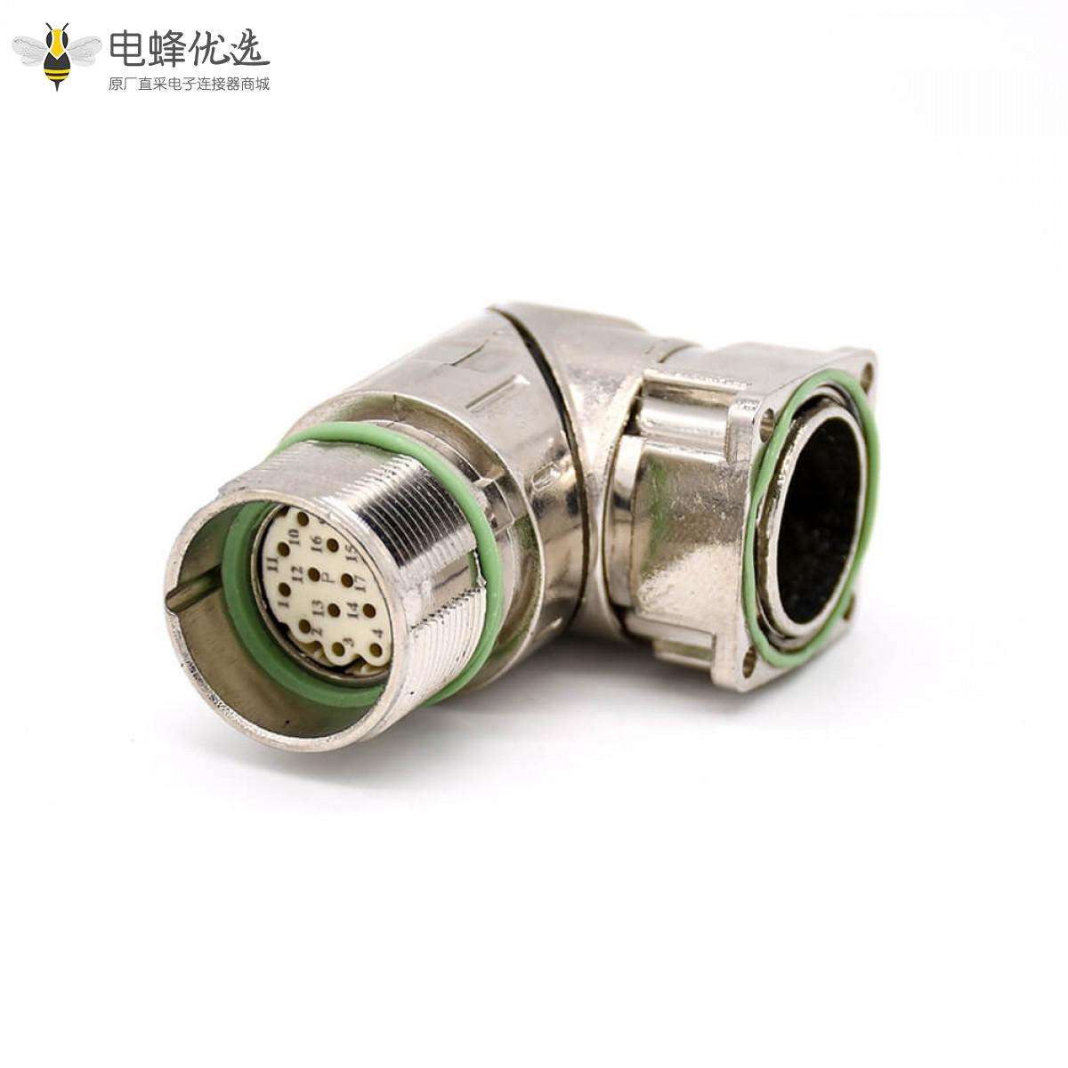 M23,17 芯,母头,弯式,面板安装,四孔法兰;
