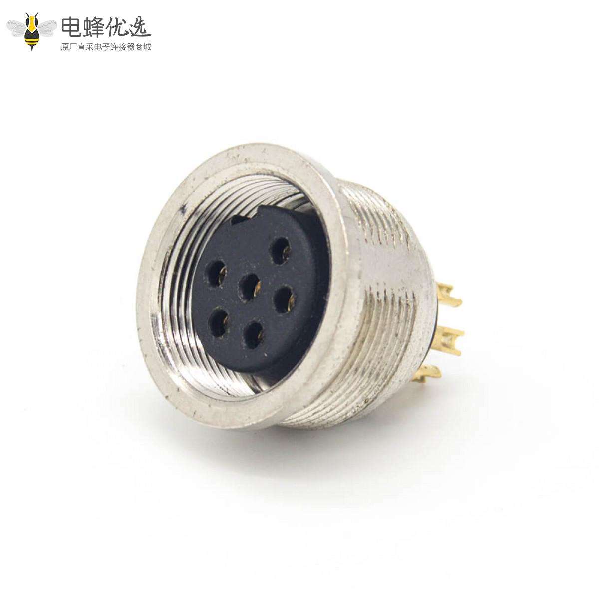 M16,A型,6芯,母头,直式,面板安装,,焊接式,后锁板;