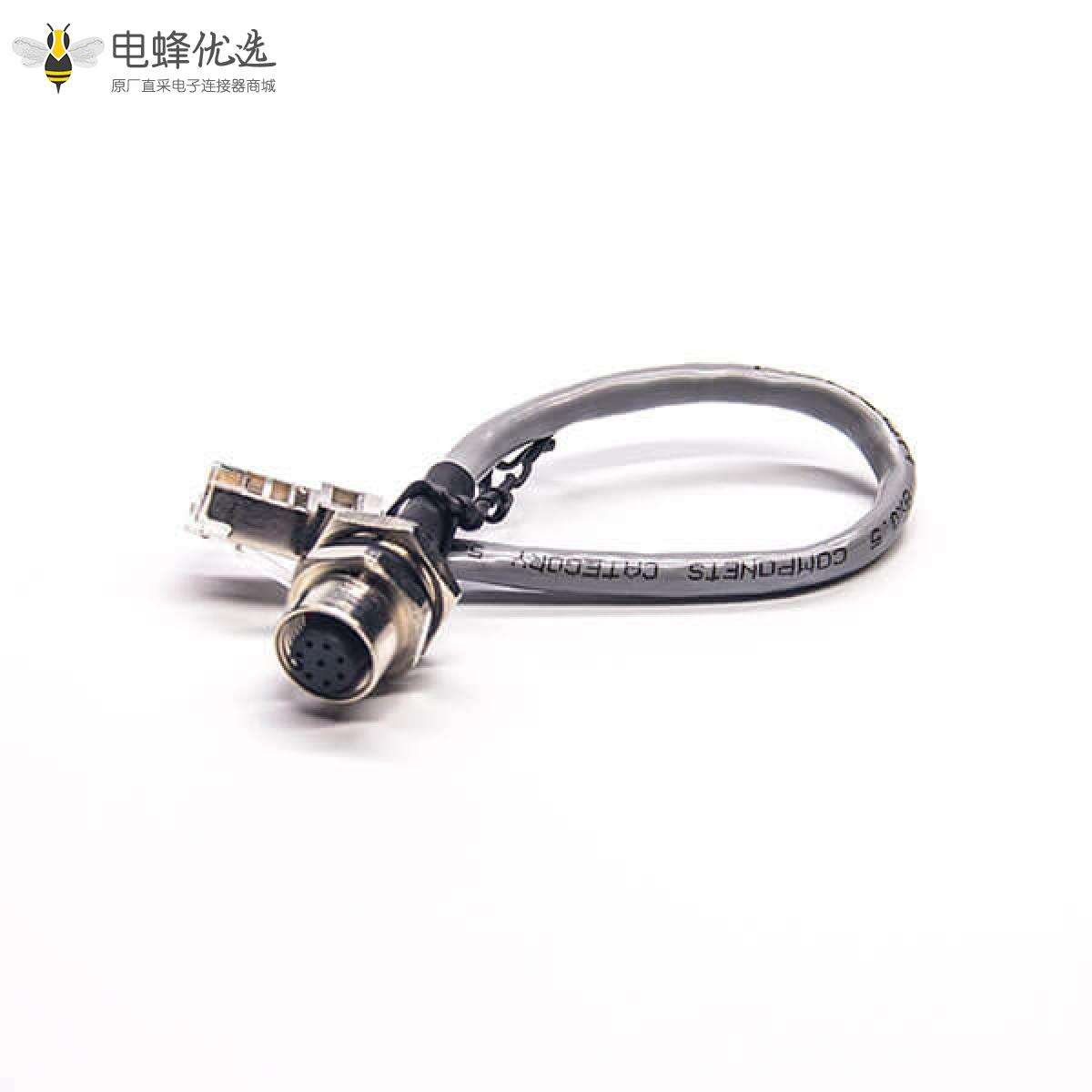 M12,型,双边线,8芯,母头,接线,焊接,带屏蔽;