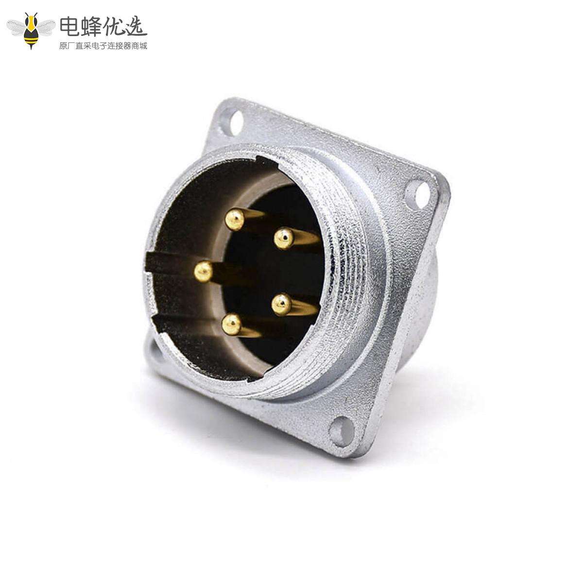 P系列,28,插座,公头,5芯,直式,面板安装,焊杯,法兰,镀金